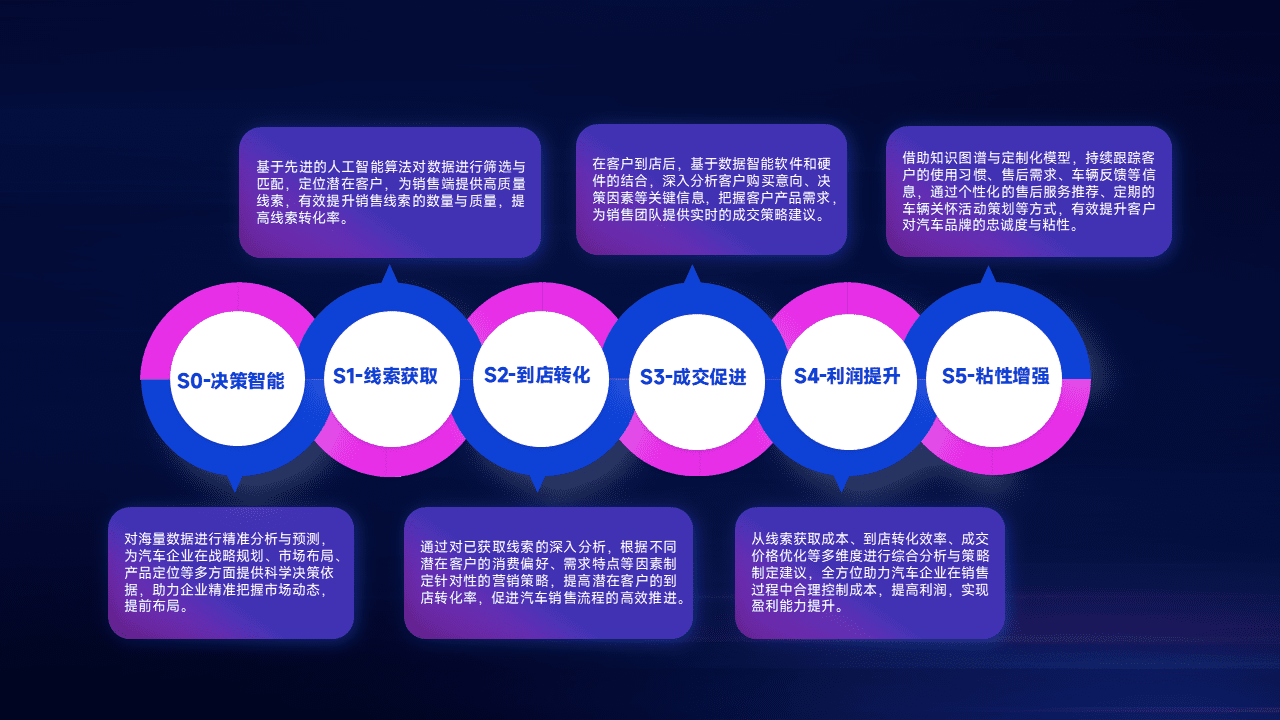 通过拓宽潜在客户来源、、优化线索分配并提高到店转化率,,以增强销售效率。。同时,,利用线索数据不断优化分析模型,,,,有效提升转化率,,,,扩大营销影响力。。。。